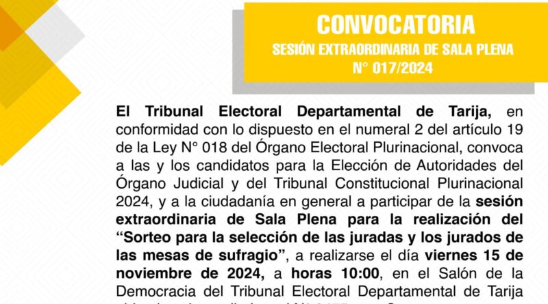 Leer másHoy inició la 𝗰𝗮𝗽𝗮𝗰𝗶𝘁𝗮𝗰𝗶𝗼́𝗻 𝗽𝗮𝗿𝗮 𝗷𝘂𝗿𝗮𝗱𝗮𝘀 𝘆 𝗷𝘂𝗿𝗮𝗱𝗼𝘀 𝗲𝗹𝗲𝗰𝘁𝗼𝗿𝗮𝗹𝗲𝘀 en la ciudad de Tarija, un paso clave rumbo a las